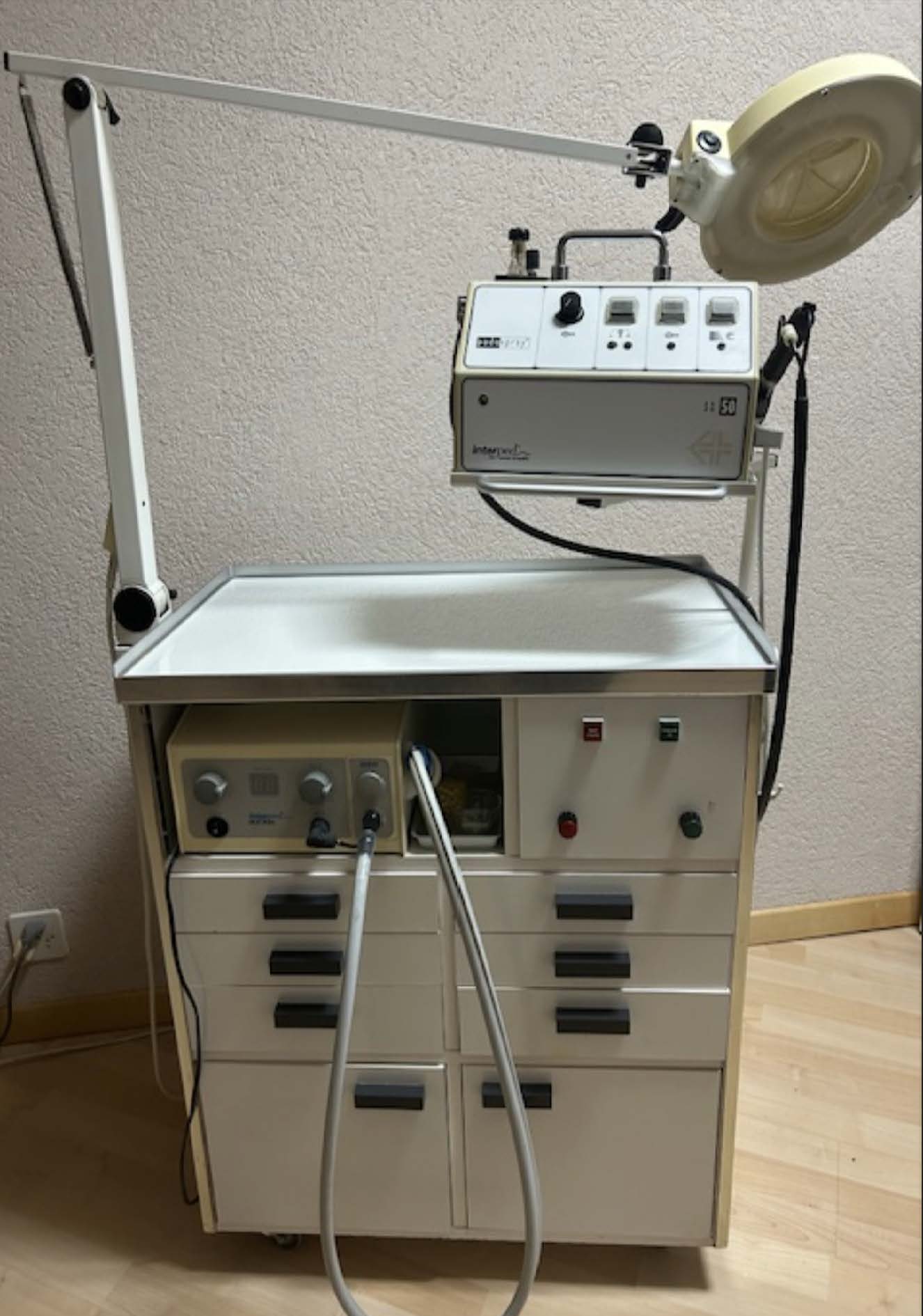 – 1 Meuble avec 1 lampe-loupe + 2 fraises (appareils)